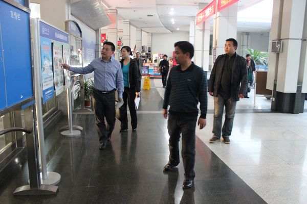 2012年11月13日,省級衛生城市復查組的環境保護、傳染病防治、健康教育、病媒生物和公共場所、生活飲用水和食品安全的專家們分別蒞臨西站,進行創衛工作檢查。專家們實地嚴格檢查了站前廣場、售票廳、候車廳、候車室衛生間以及站內副食品零售店等各個角落,仔細查閱有關衛生臺帳,并在候車廳內現場隨機抽訪旅客進行省衛生城市問卷調查。檢查組對西站的創衛工作給予了肯定。