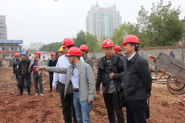 2012年11月1日,集團公司董事長陳建敏、總經理薛和有、常務副總經理何赤詮等到金龍.長運花苑施工現場檢查指導工作。