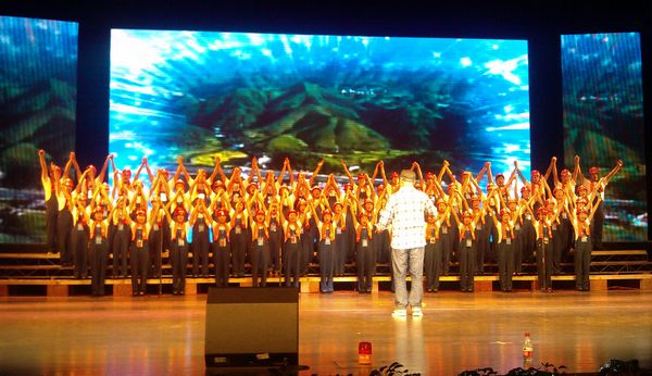 集團(tuán)公司合唱隊(duì)為本次頒獎(jiǎng)晚會(huì)送上一曲大合唱《咱們工人有力量》。