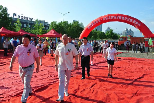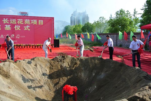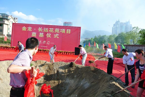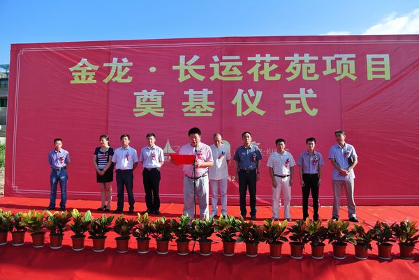 2012年8月26日上午,金龍.長運花苑商住房項目舉行隆重開工奠基儀式。儀式現場,地毯披紅,人潮涌動,彩旗飄飄,音樂雄壯激昂,高空氣球和氣拱門更是增添了會場的熱烈。