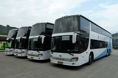 根據杭州線客流穩中有升,尤其是周末及節假日運力不足的情況,8月3日,快客分公司新購置的4輛55座安凱客車上線營運。新購置的55座安凱豪華客車為雙層豪華大巴,上層40座,下層15座。下層配備3臺15寸液晶,上層配1臺17寸彩色液晶,該車的倒車監視器還帶多動畫面,能手動切畫,監視上下層車內情況,配備電子巡航系統等。車身13.7米,比原杭州線所用的37座安凱客車車身長1.7米。