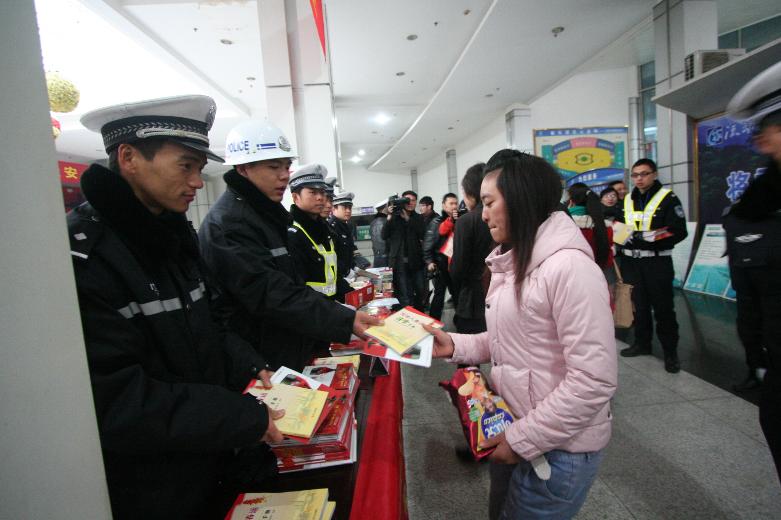 春運首日,麗水市交警支隊、高速交警麗水支隊、麗水市運管處、麗水交通音樂頻率四家單位聯合客運東、西站在兩站候車廳開展春運首日暨平安春運問計于民宣傳咨詢活動。活動現場,設立了交通安全宣傳窗,高速交警進行了調查問卷活動。四家單位除了通過派送春節禮包、新年掛歷、福字等形式送上新年祝福同時,還向旅客發放了《駕駛人春運安全手冊》、《珍愛生命  拒絕酒駕》、《平安出行  快樂駕車》、《新手上路必讀》等宣傳圖冊,向大家倡導“平安春運,人人有責”的理念。