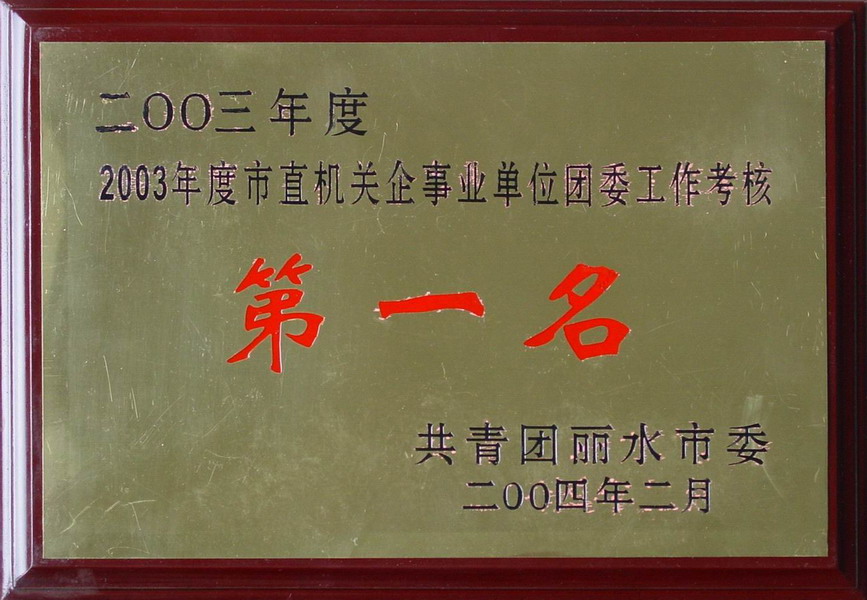 2003年度麗水市直機關企事業單位團委工作考核第一名
