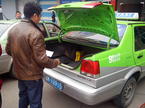 長運出租車分公司的管理員正在進行車輛技術狀況檢查