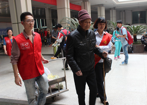 在西站候車大廳內因為有這樣一群身穿“紅馬甲”的志愿者變得格外溫馨。他們有的穿梭于人潮中,指引旅客在哪個檢票口檢票;有的為旅客送開水;有的引導旅客安檢、幫忙旅客提行李;有的帶著鉗子、熟料袋清撿站前廣場上的白色垃圾、清鏟地面口香糖;有的在候車室勸導不文明行為,例如吸煙、隨地亂丟垃圾等。在西站工作人員和志愿者的辛勤付出,讓繁忙的車站客流、車流秩序井然。