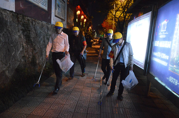 晚上19:30,大家從麗陽門公園出發,兵分兩路,經大洋路、城西路一路向南,最后到達應星樓。一路上,麗汽集團志愿者們拿著垃圾鉗將沿路兩邊的煙頭、可樂罐等垃圾撿拾干凈,并向沿路群眾進行了不隨手亂扔垃圾等文明行為的勸導,以身作則宣傳文明城市創建。