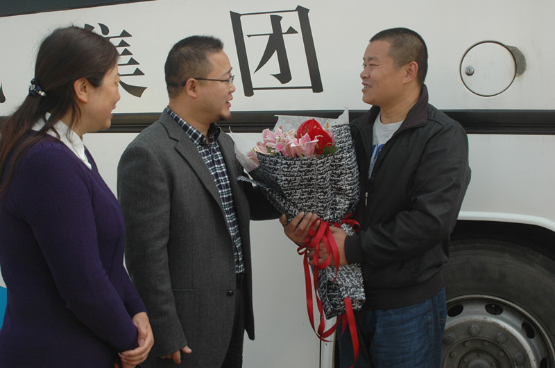 章雙林師傅接過鮮花,很靦腆的笑著說:“這沒什么,也是我的責任。”