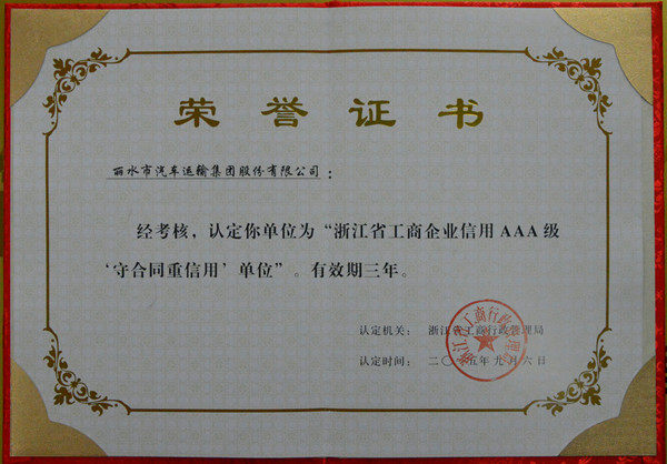 日前,麗汽集團被認定為浙江省工商企業信用3A級“守合同重信用”單位,有效期三年。11月13日上午,麗水市市場監管局直屬分局監管科科長吳乾水專程為公司送來“浙江省工商企業信用AAA級守合同重信用單位”的匾牌及榮譽證書,并對麗汽集團守合同重信用工作表示了充分的肯定。