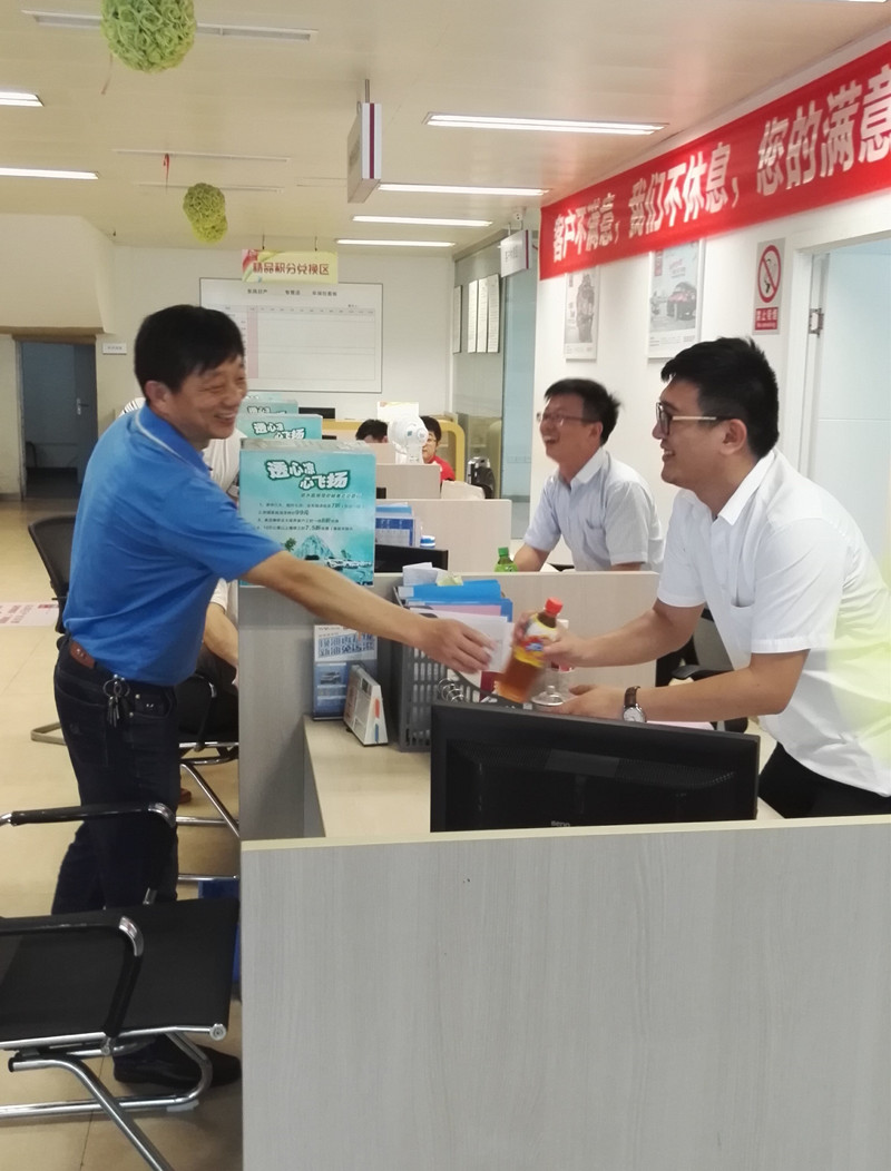 送涼活動分三個小組進行,黨委書記葉茂、常務副總何赤詮、工會主席呂麗君分別到機關、西站、東站片區送涼。他們每到一處與員工親切交談,囑咐他們注意安全生產,做好防暑降溫工作,特別要注意勞逸結合。