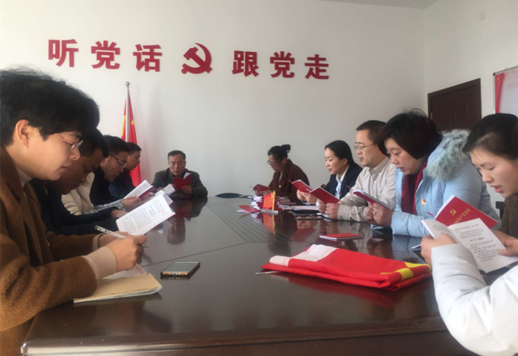 會上,支部書記王旭帶領黨員們重溫入黨誓詞,發放新黨章,黨員同志齊聲誦讀了黨章中關于黨徽黨旗的內容。書記結合《機關支部主題黨日活動制度》和《關于開 展黨員(優秀)先鋒崗活動的通知》兩份文件精神的內容,將2018年支部的主要工作和要求予以了傳達。
