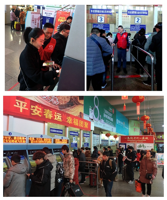 售票窗口前排起了長隊,志愿者們在做好文明一米線提醒時,還熱心引導旅客通過自助機購票;碰到不熟悉自助購票的旅客,就耐心地告知購票流程;發(fā)現(xiàn)有攜帶疑似危險品的,提前做好提醒告知;看見抱小孩、行李多的旅客,還主動幫忙照看孩子、搬行李。大家都希望通過自己的行動能溫暖旅客們的團圓路,為平安和諧春運盡綿薄之力。