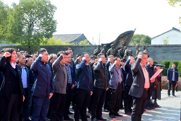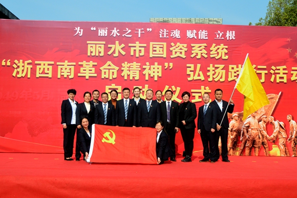 在浙西南革命根據地紀念館前,所有與會人員面對黨旗,由市國資委黨委委員、副主任高天河帶領大家重溫入黨誓詞。革命戰爭年代,周恩來、劉英、粟裕等老一輩革命先驅為了民族的獨立和人民的幸福,將鮮紅的熱血拋灑在浙西南大地上,締造了偉大的“浙西南革命精神”。啟動儀式上,集團公司雷冰帆作為職工代表在大會發言,她講到,作為職工代表要在弘揚“浙西南革命精神”的征程上,在創建浙江( 麗水)綠色綜合發展改革創新區、打造詩畫浙江大花園最美核心區主戰場中當先鋒、作表率。