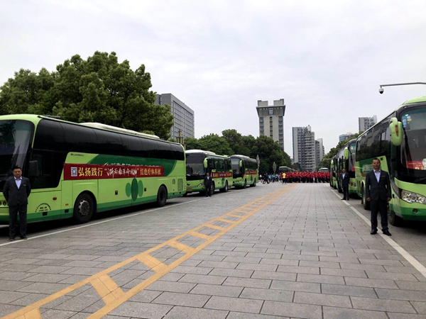 旅游汽車分公司副經理薛虹強調,這次派出16輛車,16位駕駛員,直接代表著麗汽集團的形象和旅游車分公司的新面貌,參與者務必要在思想上高度重視。這次活動由市總工會牽頭,麗水市本級各個主要旅行社承接,市委市政府領導蒞臨現場,還有市、區單位領導和勞模、一線(優秀)員工550多名人員參加,這次活動的影響面很廣、很深遠,必須全力做好紅色旅游包車服務工作,以自己實實在在的行動弘揚踐行“浙西南革命精神”,給公司形象做一個很好的宣傳。