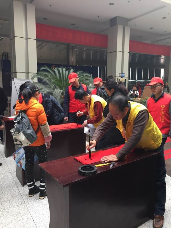 總工會(huì)的志愿服務(wù)隊(duì)伍還帶來(lái)了“志愿者書(shū)寫(xiě)春聯(lián)”,現(xiàn)場(chǎng)寫(xiě)就的200多幅春聯(lián)很快就被乘客們領(lǐng)取一空。